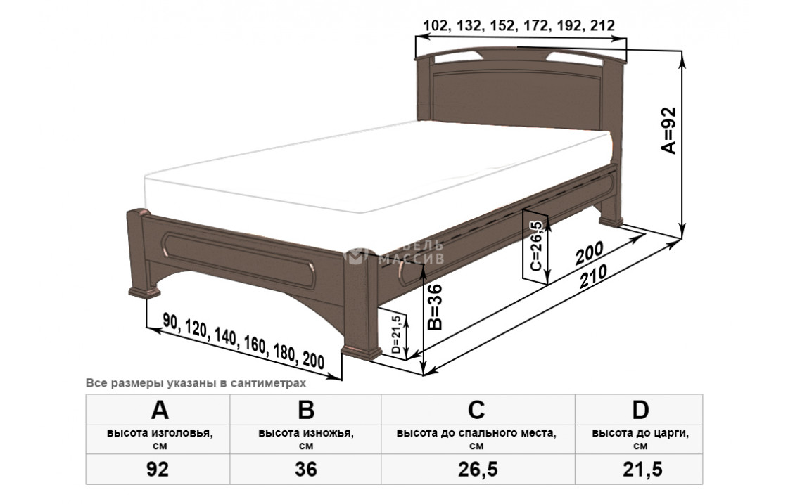 Прочная кровать Лаура сделана из экологически чистого древесного массива. Модель имеет чуть изогнутое изголовье с двумя продолговатыми отверстиями и крепкий каркас с устойчивыми ножками. Изделие, которое можно купить по выгодной цене в нашем интернет-магазине, представлено в различных комплектациях. Осуществляется доставка на дом по Новороссийску и Краснодарскому краю .| Размер | Цена | |