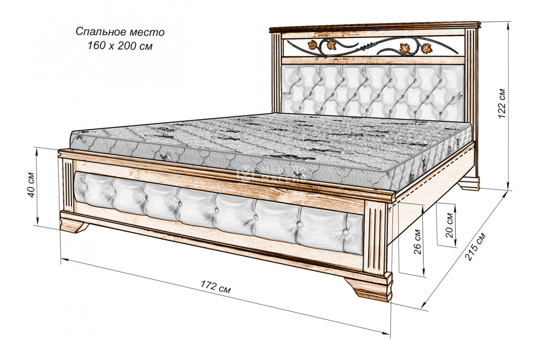 Кровать Лозанна из массива. Осуществляется доставка на дом по Новороссийску и Краснодарскому краю .| Размер | Цена | |