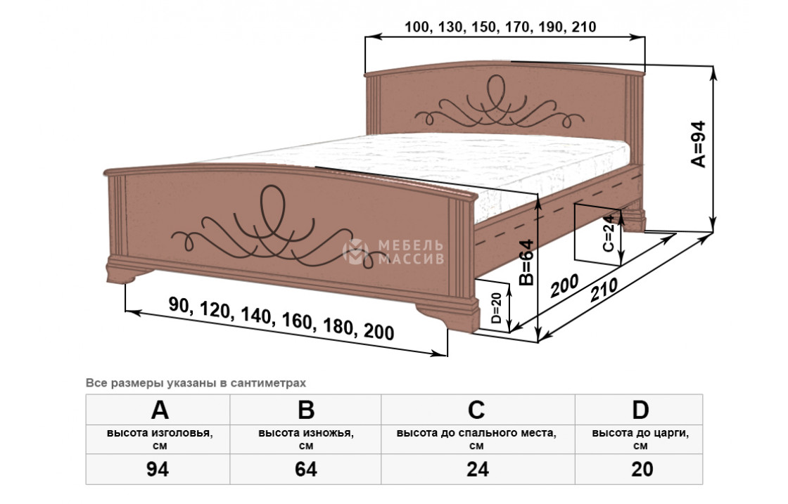 Прочная кровать Нова изготовлена из экологически чистого древесного массива. Модель имеет украшенные резьбой сплошные спинки, плавно переходящие в устойчивые ножки для защиты напольного покрытия. Изделие, которое можно купить в нашем интернет-магазине по демократичной цене, покрыто первоклассным лаком. Осуществляется доставка на дом по Новороссийску и Краснодарскому краю .| Размер | Цена | |
